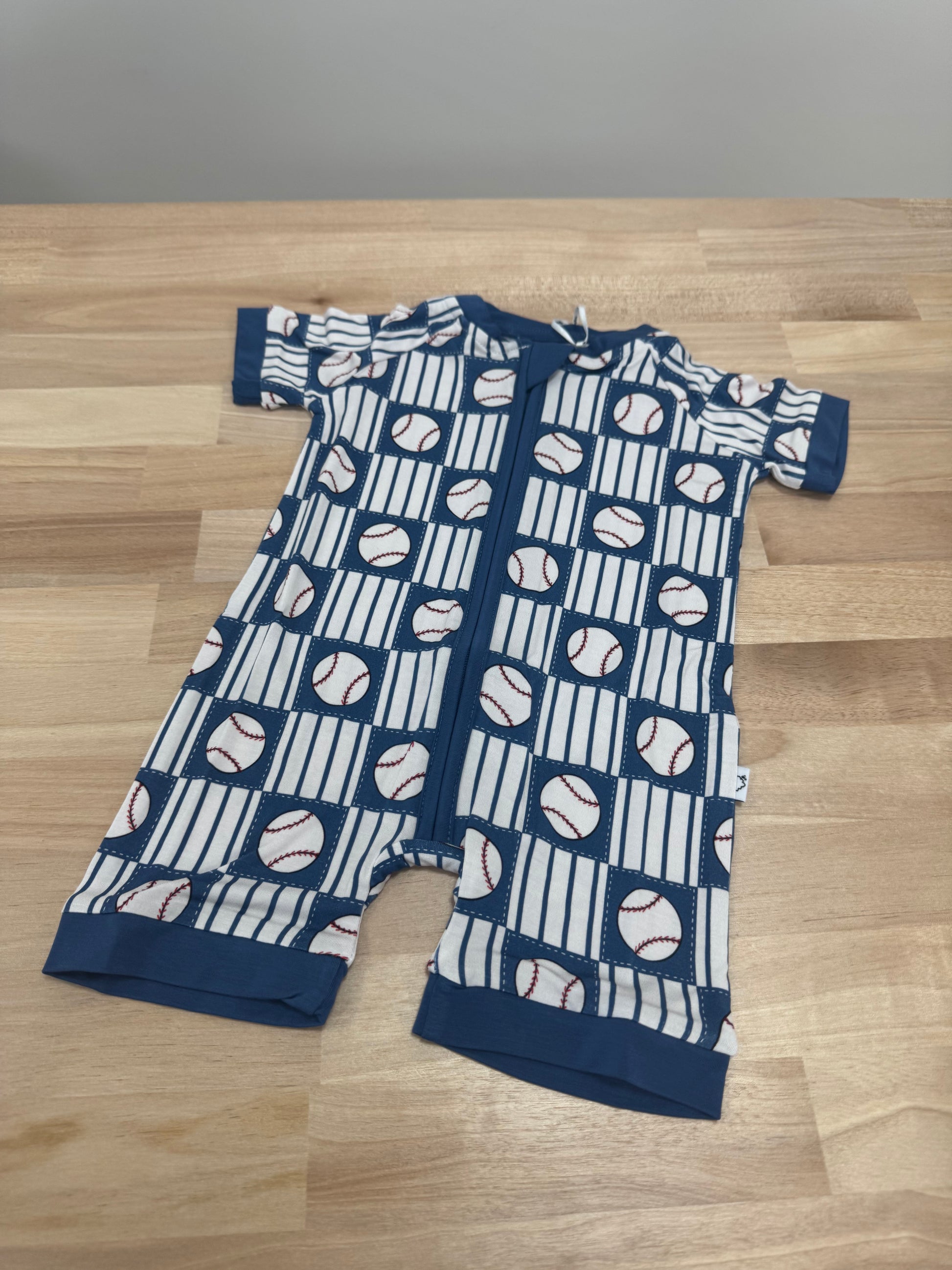 Made from soft bamboo fabric, our Baseball Grid Shortie is the perfect choice for summer wear. Its navy color complements a neutral baseball design, giving a stylish and comfortable look. With its breathable material, your little one will stay cool and comfortable all season long.