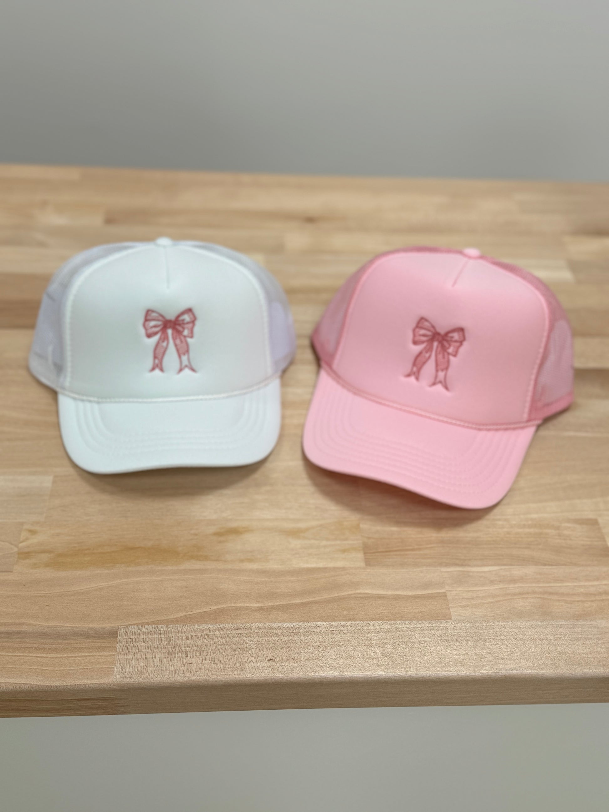 This adorable Coquette Trucker Hat is available in two colors - pink or white - and features an adorable bow design. Perfect for any fashion-forward individual, this hat is adjustable for a comfortable fit. Make a statement while keeping the sun out of your eyes.