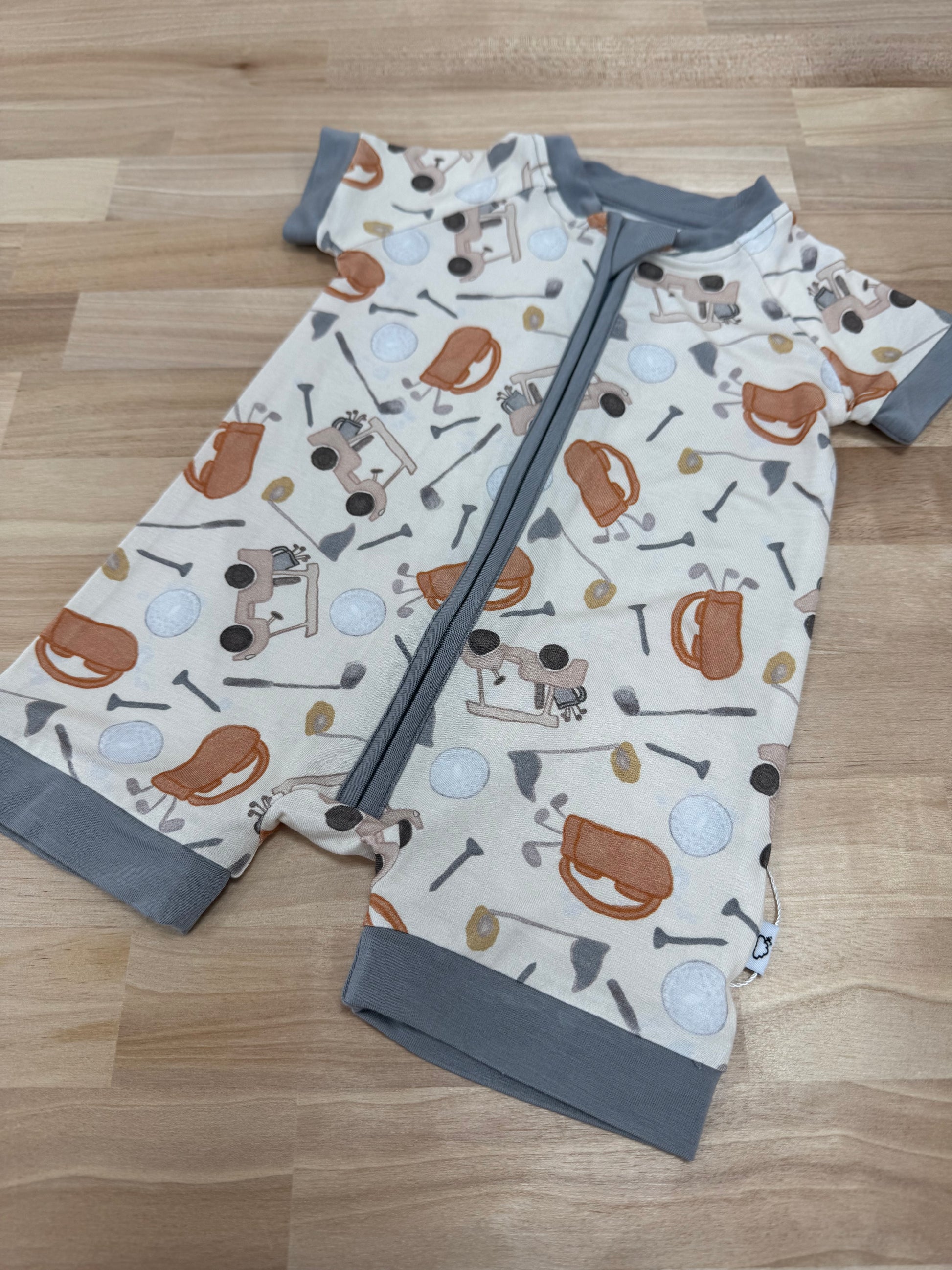 Stay cool and in style on the golf course with our gender neutral Fore shortie. Perfect for any little golfer, this garment is designed to keep you cool during hot summer rounds. Expertly crafted with comfort and performance in mind, you'll be ready to conquer the course with mom & dad.