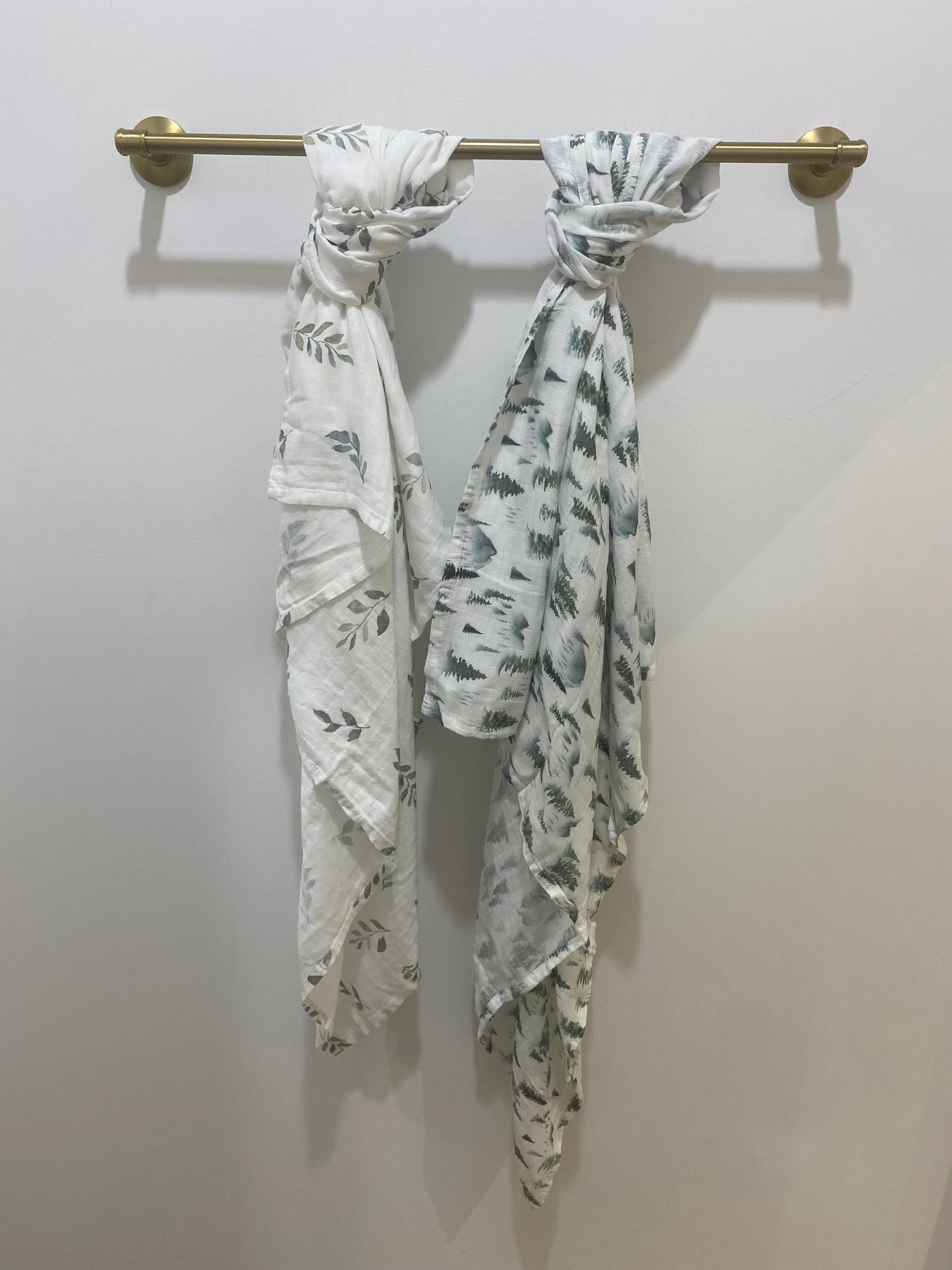 Introducing the Wilderness Swaddle Blanket, crafted from lightweight muslin for ultimate softness. Designed with a picturesque mountain and tree design, this versatile blanket is perfect for swaddling, using as a blanket, or even as a nursing cover. Enjoy the comfort and ease with this must-have essential for all new parents.